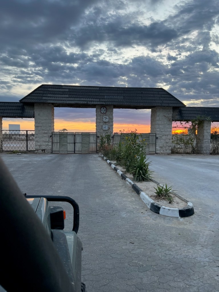 Unser nächstes Ziel sollte Angola sein, sodass wir den Etosha Nationalpark am nördlichen Gate verließen. Glaub hier kommt sonst kaum jemand vorbei, so wie sich der Ranger über uns freute und mit uns schnattern wollte. Vom Gate bis zur Grenze nach Angola gab es nicht wirklich einladend klingende Campsites nur ein Guesthouse mit Campsite klang okay. Wir fuhren zu den GPS Koordinaten und standen vor einer Saatfabrik. Tony war direkt überzeugt, dass ich „mal wieder“ Quatsch recherchiert hätte. Doch bei Nachfrage an der Schranke bestätigte man das Guesthouse. Wir wollten noch Smalltalk betreiben und fragten, was ich angebaut wird, doch das wusste er nicht (komisch, oder?!)