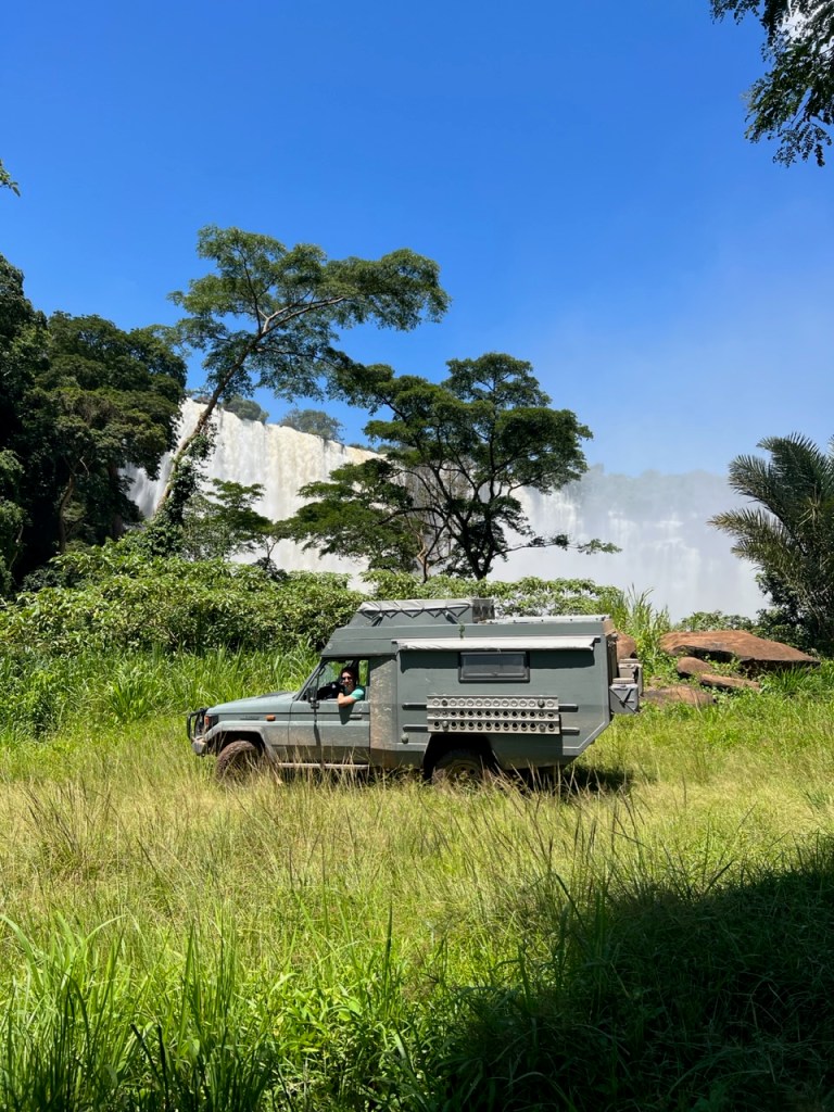 Nach einem leckeren Sundowner (mit neidischen Blicken der Pauschalreisenden, die nur für ein Foto stoppten und dann getränkelos weiter mussten) rollten wir ins Camp. Es dauerte nicht lange, bis ein anderer Overlander neben uns parkte. Der erste seitdem wir dieses Jahr unterwegs sind. Platzwart Adam sprang aus dem Auto und suchte das Gespräch – wir kannten die beiden Holländer… Wir hatten sie 2023 in Lusaka kennengelernt. Der Herr hat geholfen, unseren Ersatzreifen aufs Dach zu bekommen. Es war ein zauberhaftes Gespräch mit Rückblicken, Empfehlungen und weiteren Reiseideen.