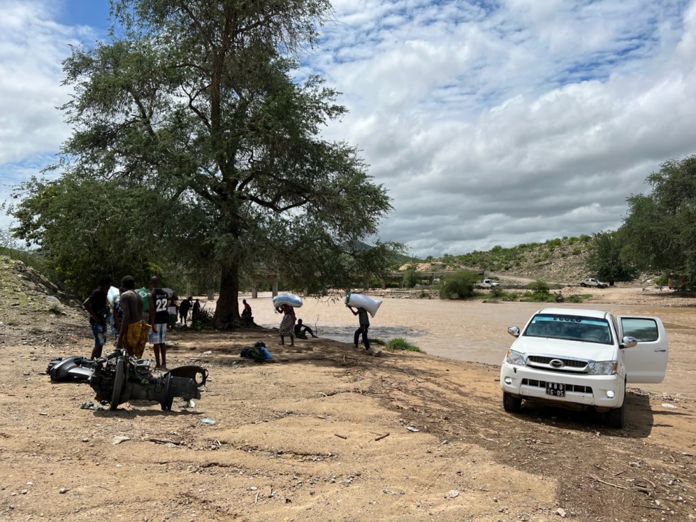 Stimmung etwas angespannt – was tun? Achsschaden hinten riskieren? Ignorieren? Buschlösung? Toyo bereitet solche “Überraschungen“ immer zum Wochenende. Ich fand im 50km entfernten Dorf eine Werkstatt und kontaktierte sie – keine Antwort. So beschlossen wir, das Dorf zu erkunden, es gab ein Rolex und wir tranken Bier in der Dorfkneipe.
