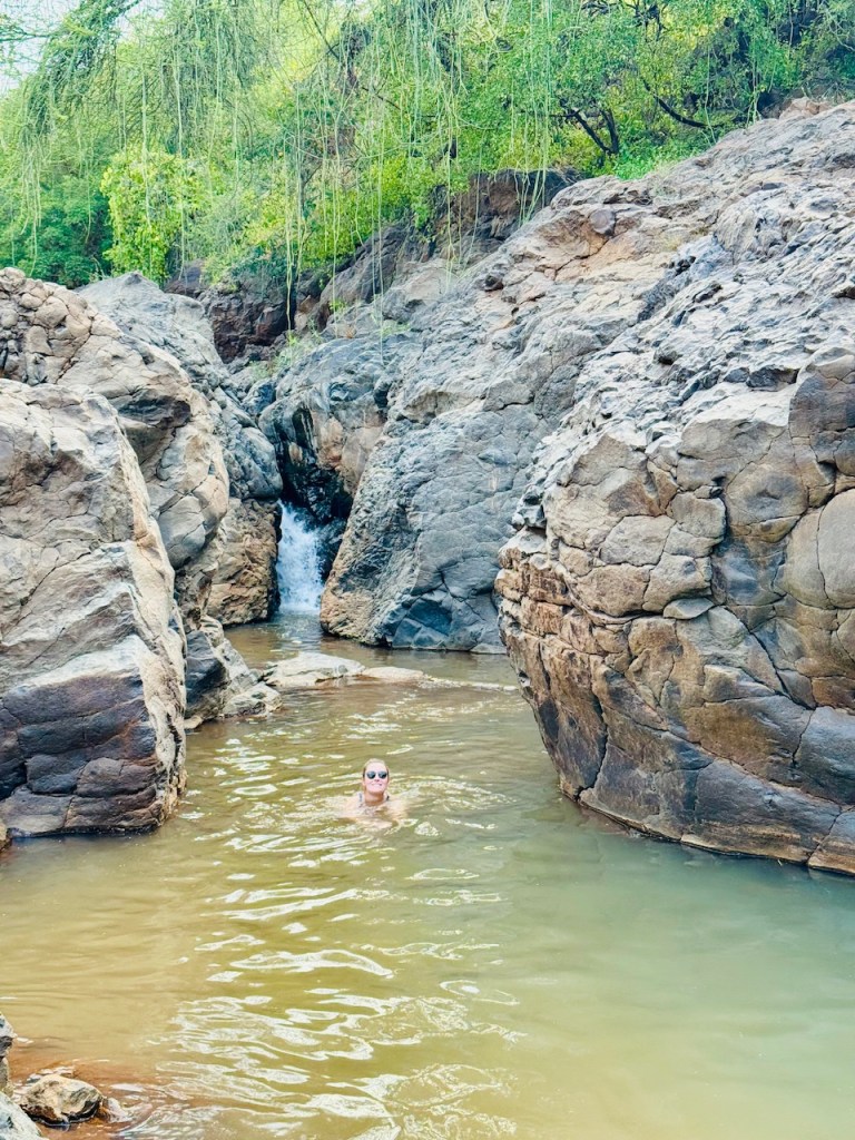 Unser Guide war 18 und kannte jeden auf dem Weg. Die Wanderung begann im Dorf, dann durchquerten wir das Maisfeld vom Onkel, kreuzten das Spiantbeet vom Cousin und da er merkte, dass wir für „Weiße“ recht fit und trittsicher waren, wurde es eine Kletterei bis zu wirklich jedem Steinvorsprung mit Ausblick ins Tal.