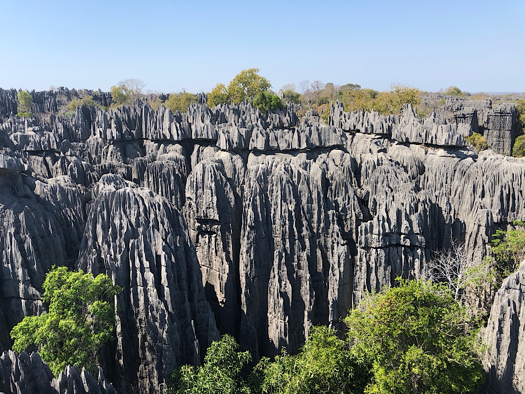 Wind und Wasser haben hier durch Erosion ein Kalksteinmassiv allmählich so ausgewaschen und geformt, dass ein gigantischer „Teppich“ aus bis zu 30m hohen Felsnadeln mit bizarren Formen entstanden ist.