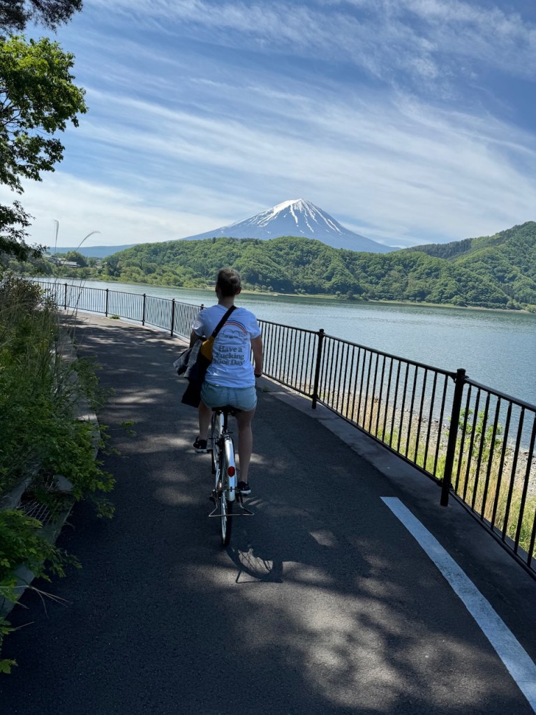 Es ging um den Kawaguchikosee. Wir strampelten an dem Tag knapp 40km, doch wurden mit unzähligen tollen Ausblicken auf den Mt. Fuji belohnt und da passte natürlich auch ein Eis mit Kirschblütengeschmack.