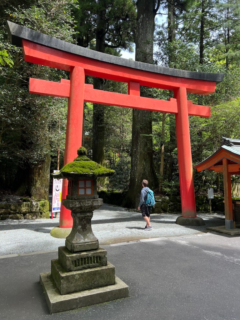 Unser Weg führte uns zum bekannten Hakone Schrein, er markiert den Übergang es von der Menschenwelt in die Götterwelt, deshalb immer vor dem Torii verbeugen.