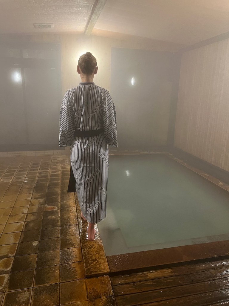 Oh vielleicht sollte ich schnell Onsen erklären – es ist die japanische Bezeichung für heiße Quelle oder Thermalbad. Wir befinden uns auf einer vulkanisch aktiven Insel, deshalb gibt es unzählige solcher Onsen.