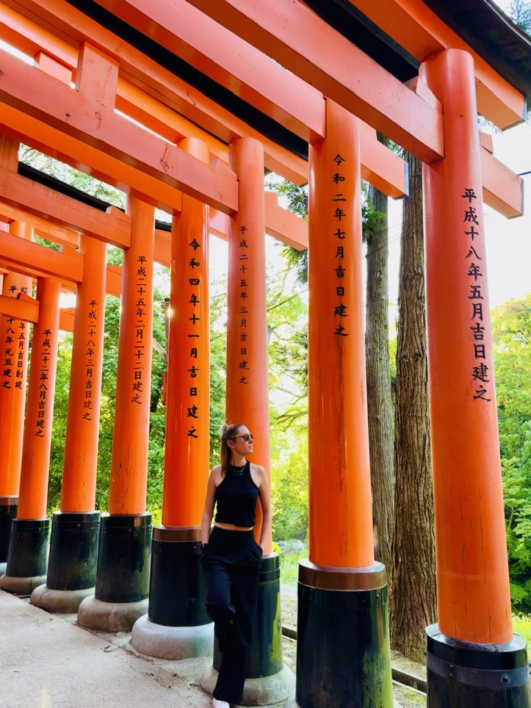 Der Schrein wurde im Jahre 794 zu Ehren des Reis-Gottes Inari gegründet, als der damalige Kaiser die Stadt Kyoto als neue Hauptstadt festlegte. Auf dem Gelände des Schreins befinden sich viele Fuchsstatuen, Boten des Reis-Gottes.