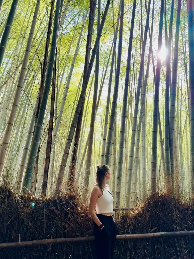 Am nächsten Tag drängte ich Tony zum Besuch des Bambuswaldes in Arashiyama, ein bekanntes Ausflugsziel von Kyoto. Wir (also ich) wollte am frühen Morgen da sein, da es dann noch nicht so voll und überlaufen ist. Das haben wir geschafft, aber wir fanden es total overhyped, denn man läuft ungefähr 100m durch ja sehr hohen Bambus und alle Jungs machen von ihren Mädels gestellte Bilder für Insta – viele sogar mit Requisiten.