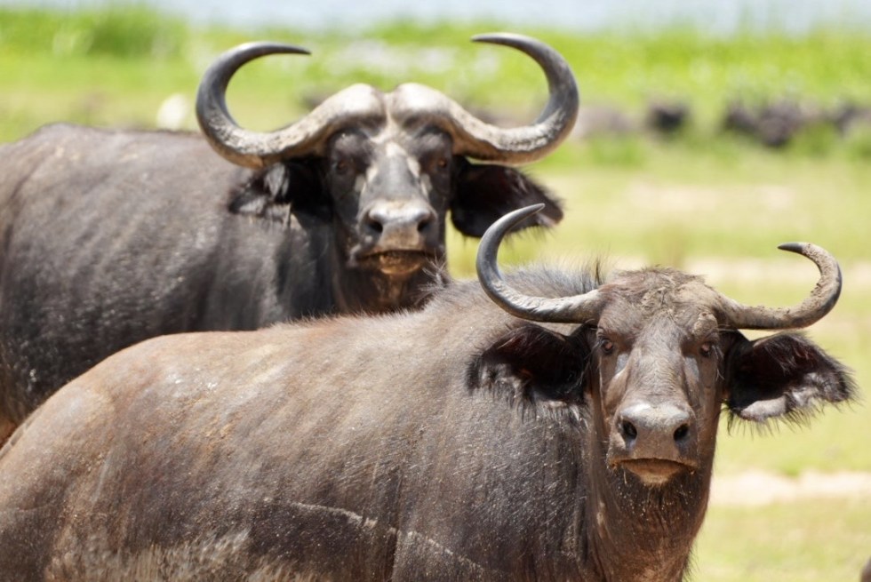 Wir fanden eine schöne Campsite, die offiziell im Nationalpark war, aber noch ohne Eintrittsgebühr. Schon am Eingang der Campsite begrüßte uns eine Herde Büffel und es streunerten Warzenschweine herum. Wir machten trotz Regen ein Feuer und probierten uns im Burger braten. Es gab nur 500 g gefrorenes Hack, aber mein selbstgebauter Burger war wirklich lecker und das „Auftauwasser“ vom Hack verteilte ich als Lockmittel um Toyo.