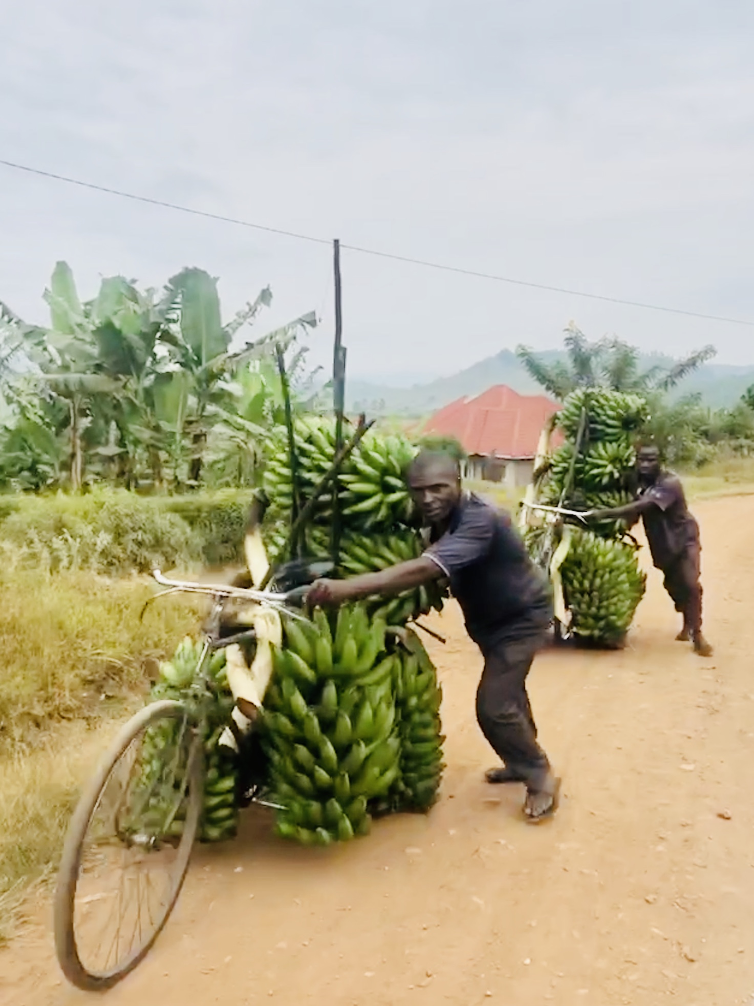 Wir fuhren durch viele Dörfer und beobachteten das Leben. Auffallend waren die vielen Bananenplantagen, also eher, dass die Männer bis zu sechs Stauden auf dem Rad zum nächsten Markt transportieren.